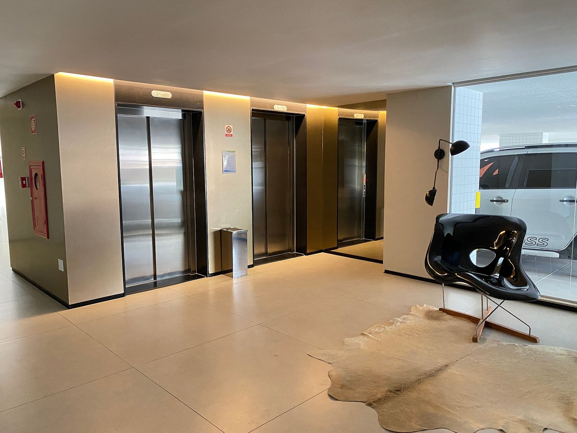 Transportar animais no braço ou na caixa de transporte pelo elevador de serviço;
