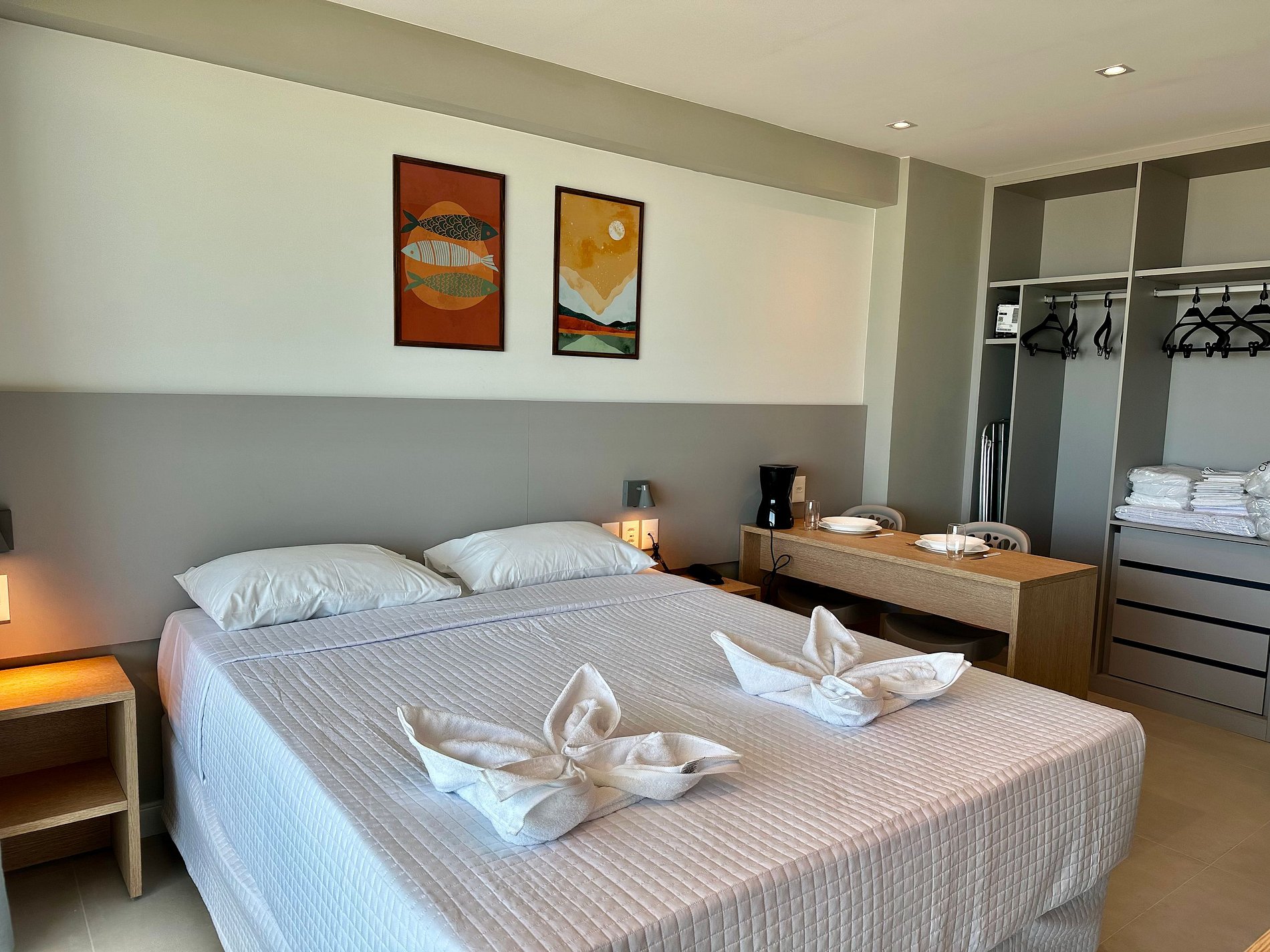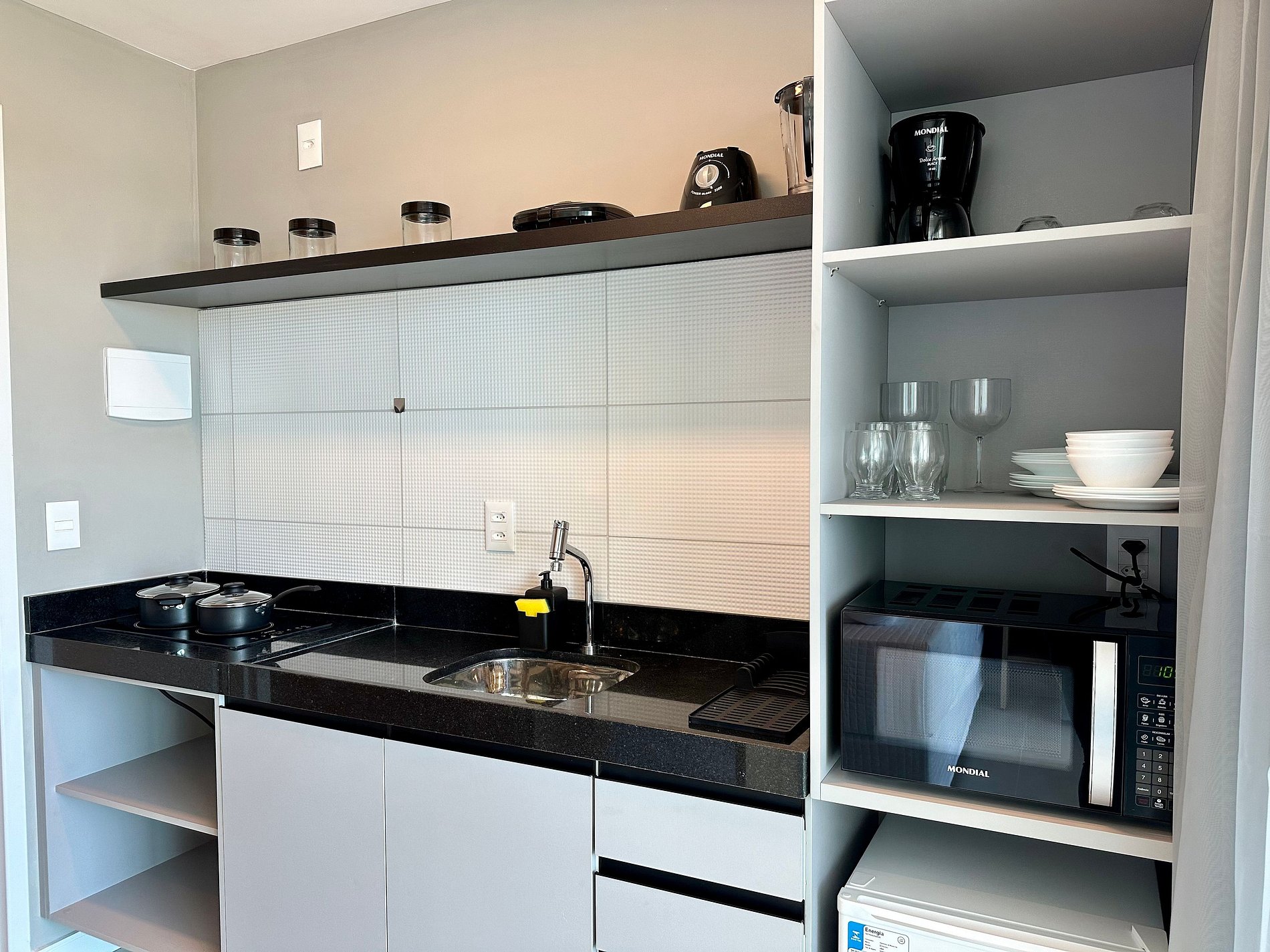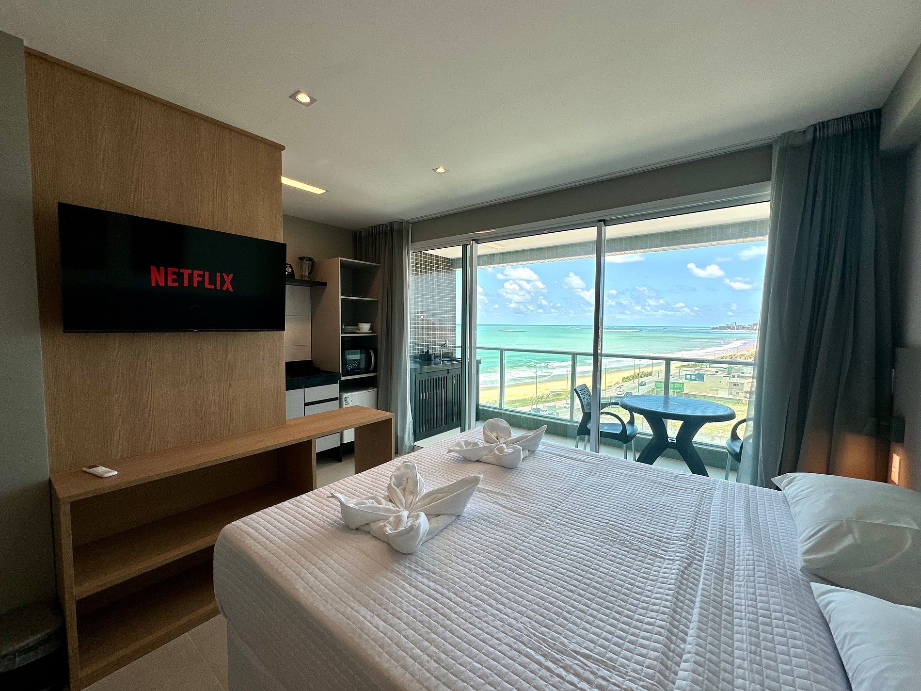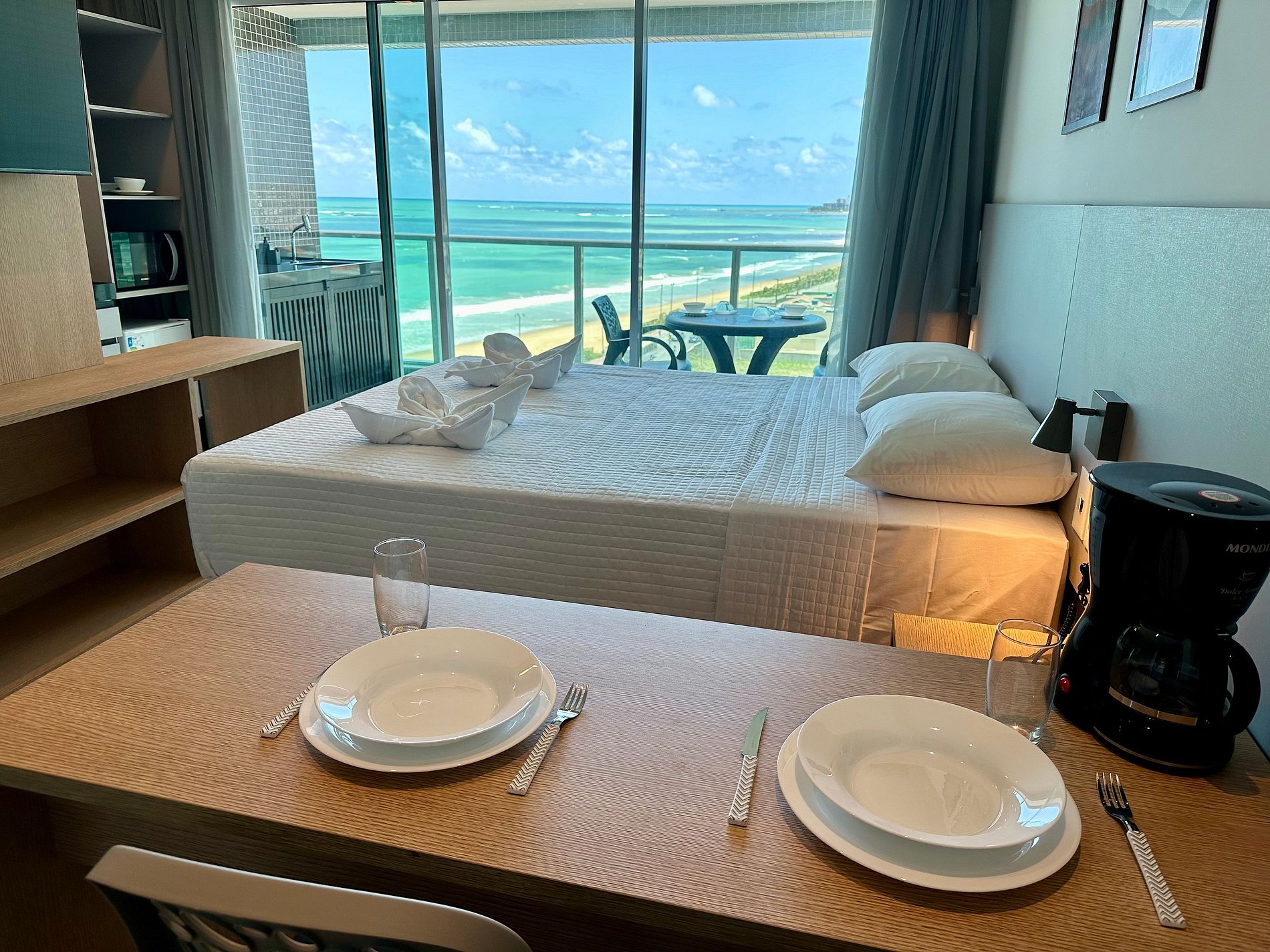 Desfrute do conforto com vista para a praia neste moderno e acolhedor apartamento, que acomoda até 2 pessoas. Cozinha totalmente equipada, ar-condicionado e uma vista deslumbrante do mar. O prédio oferece uma excelente infraestrutura, estacionamento gratuito. Uma experiência única aguarda por você neste refúgio, com um kit de chegada que inclui shampoo, condicionador, sabonete e papel higiênico. Completo com lençóis e toalhas para sua comodidade.