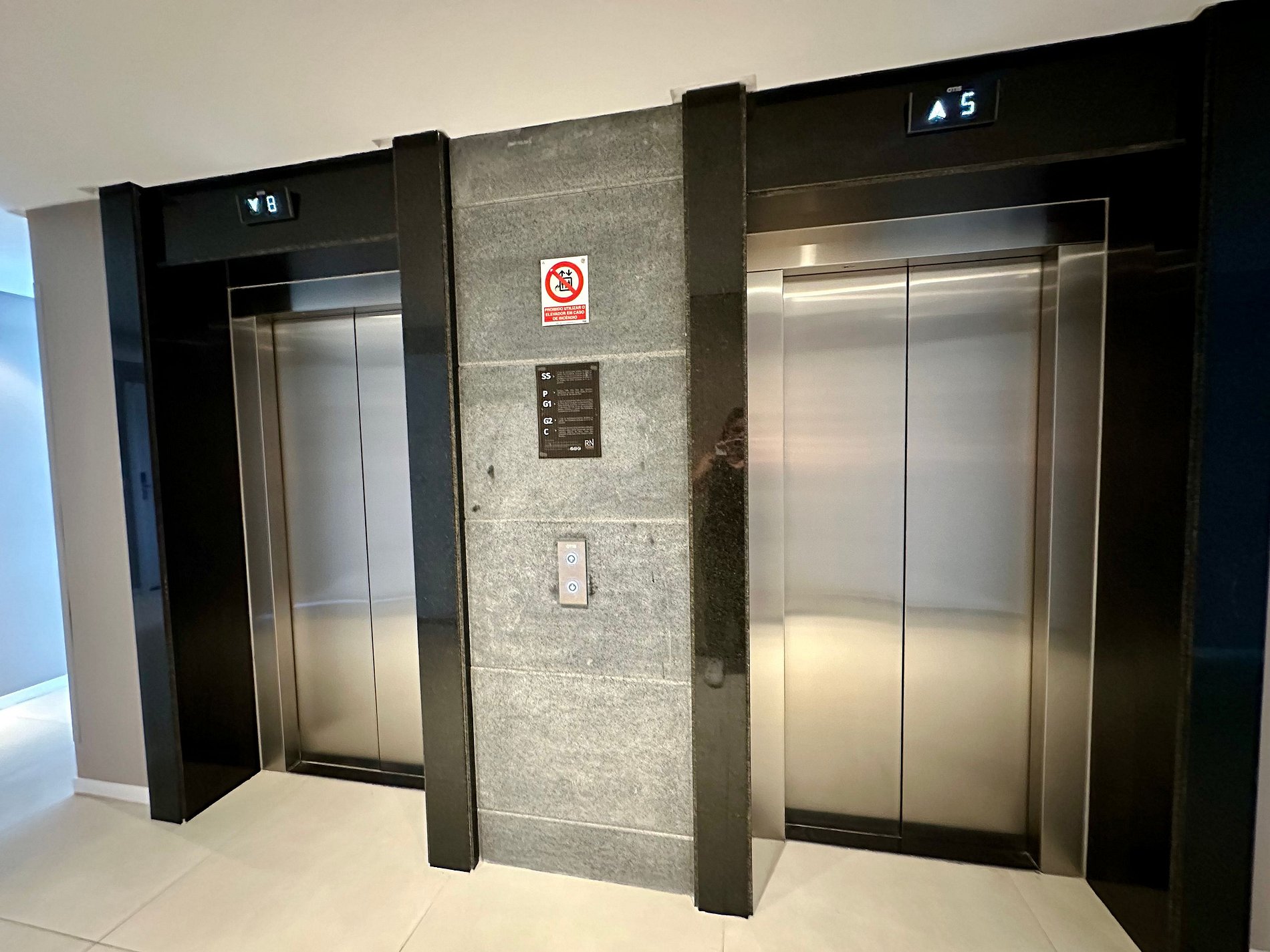 Transportar animais no braço ou na caixa de transporte pelo elevador de serviço;