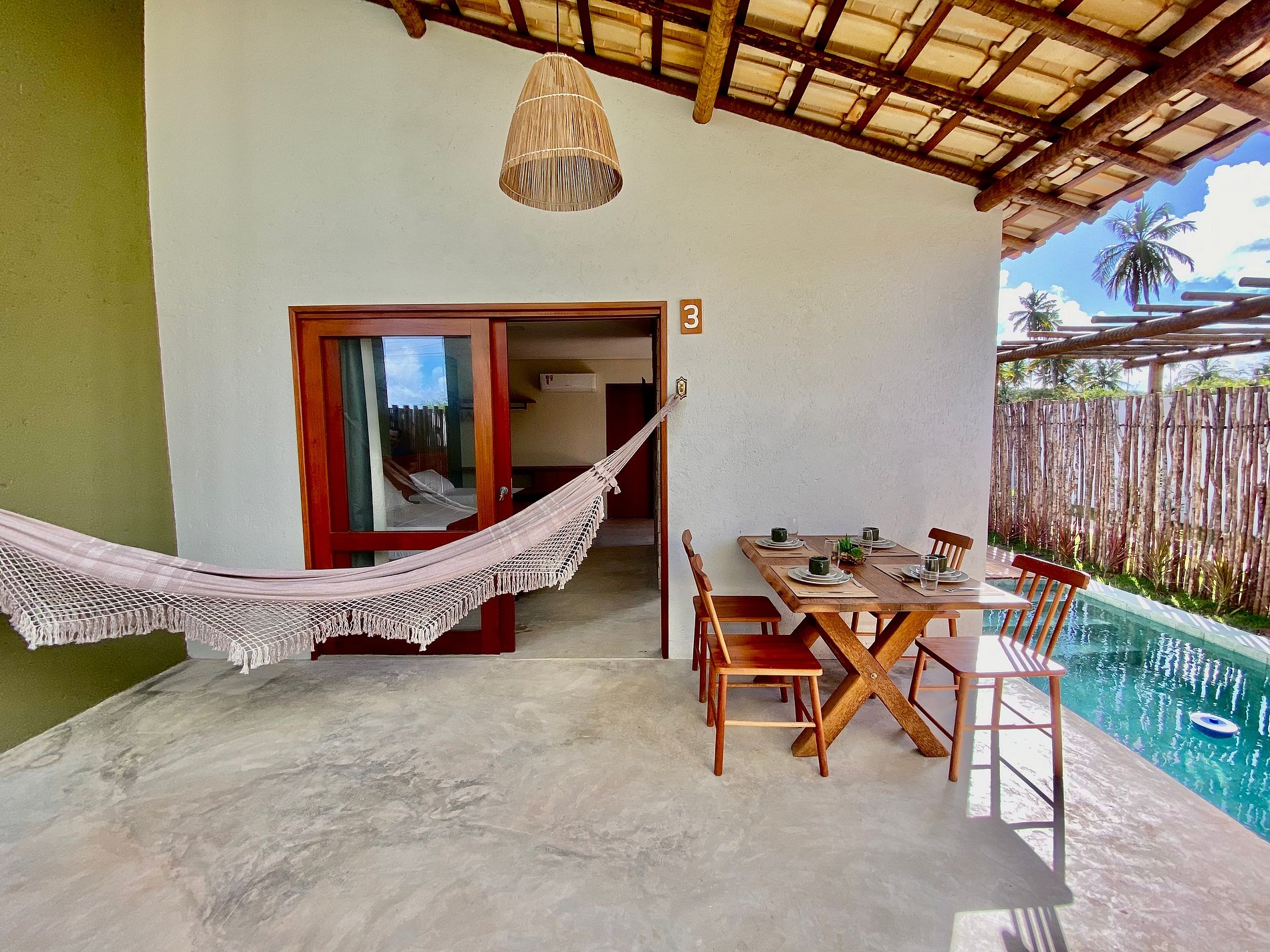 Todas as acomodações possuem piscina privativa ao ar livre, jardim, ar-condicionado, varanda térrea e Wi-Fi gratuito.