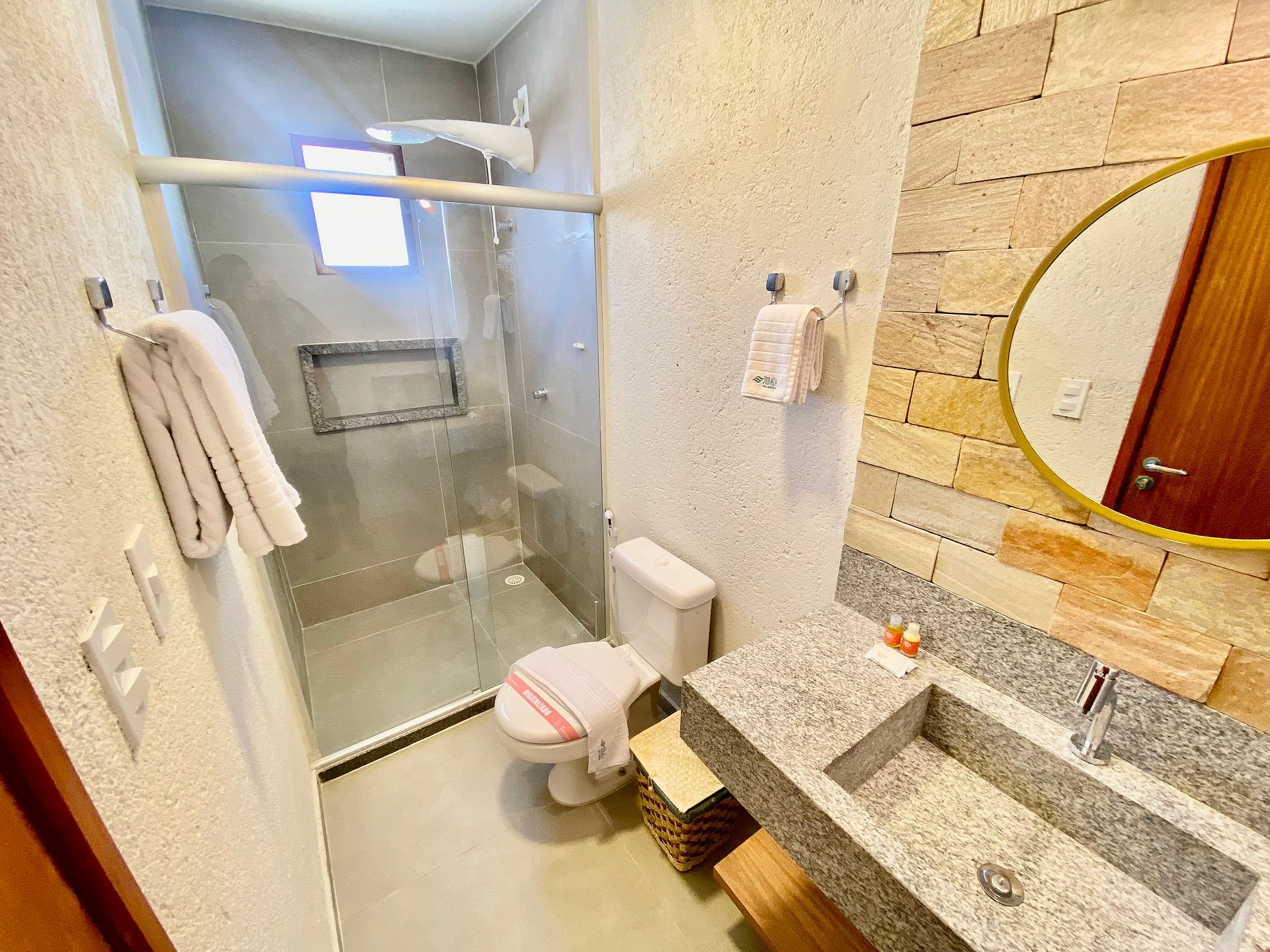 • Banheiro privativo que inclui chuveiro e secador de cabelo;
