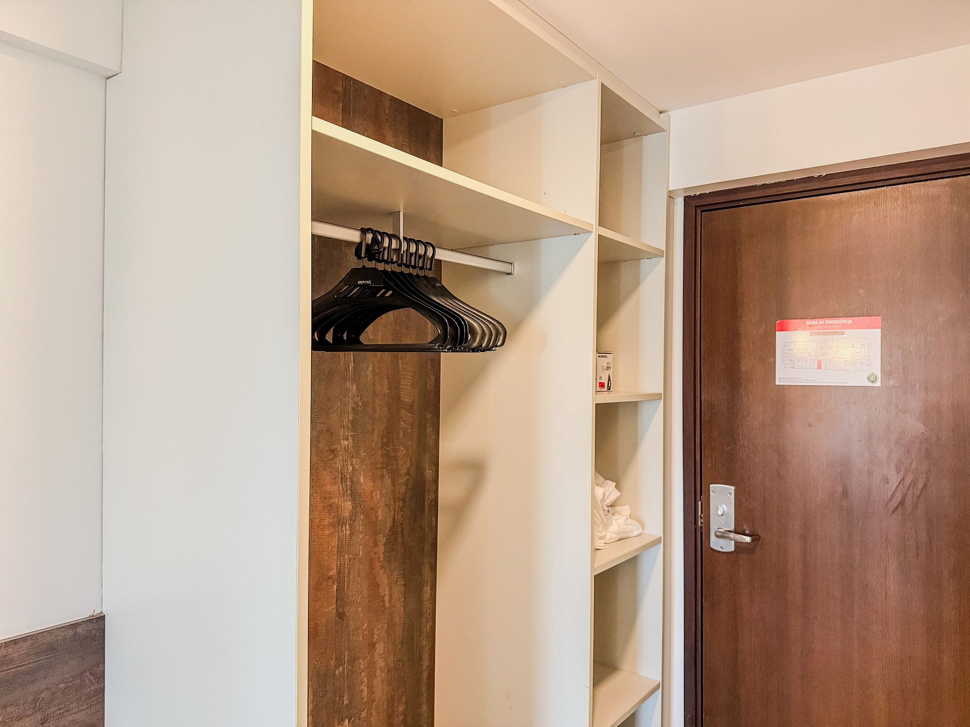 Na unidade você encontrará, ferro de passar, secador de cabelo, araras de roupas com cabides e dentro do prédio loja e restaurante com opção de café da manhã (custo adicional).
