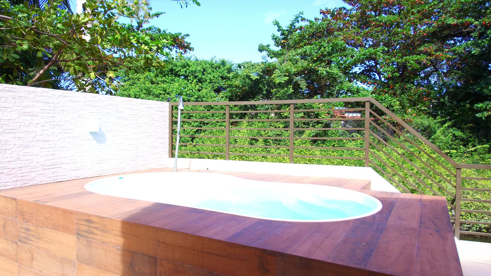 Piscina ao ar livre adulto e criança, estacionamento privativo gratuito, jardim, cozinha compacta, sala de estar, sala de jantar, banheiro social e varanda térrea.