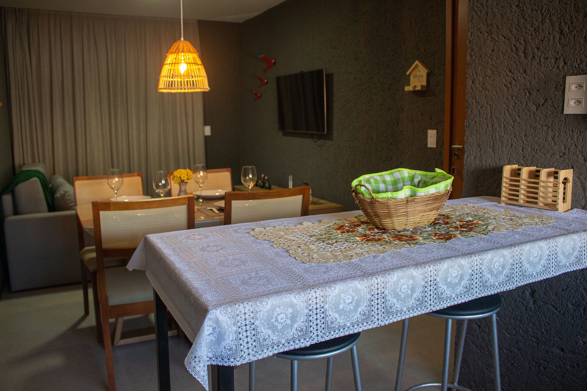 Possui 63m2, sendo 2 suítes, sala de estar com varanda gourmet e churrasqueira, cozinha, área de serviço e 01 vaga privativa