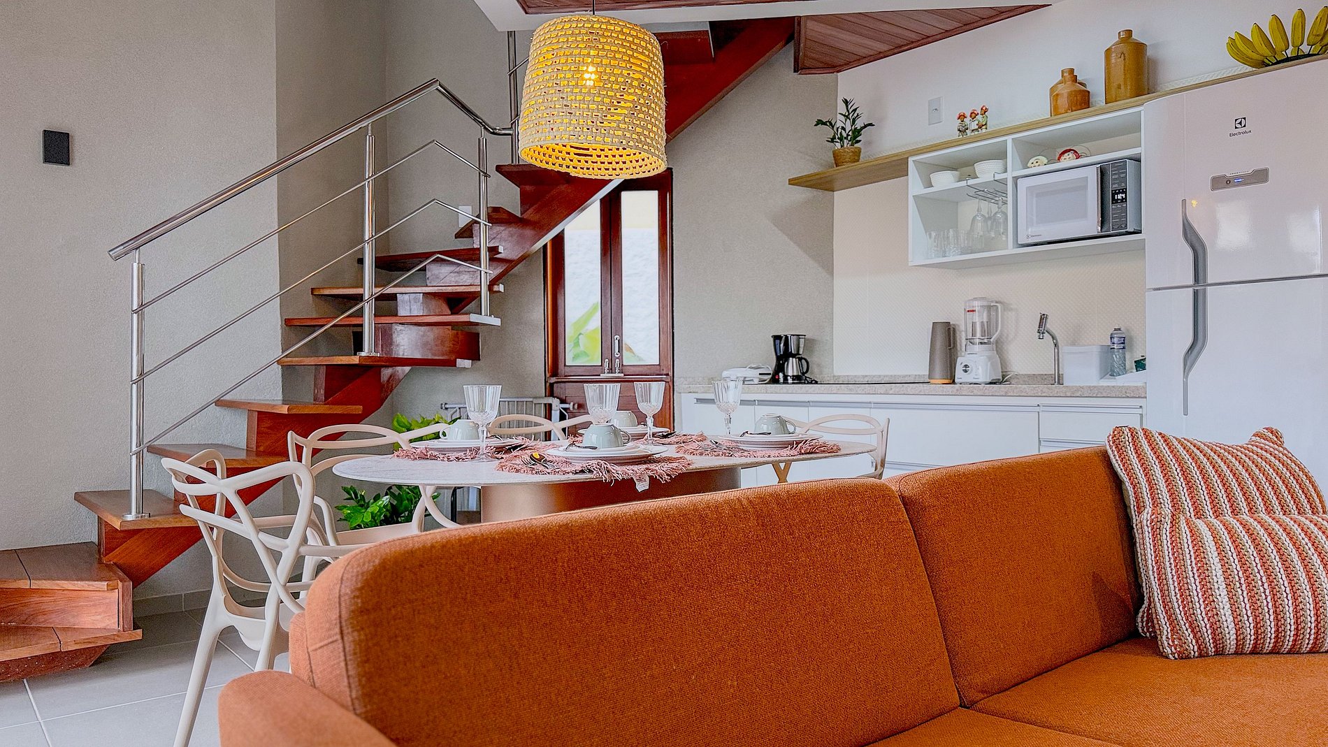 A Chalé Duplex é completa com geladeira, cooktop, micro-ondas, liquidificador e cafeteira é um grande trunfo. Ela oferece aos hóspedes a liberdade e a economia de preparar suas próprias refeições e lanches, ideal para estadias mais longas ou para famílias.
