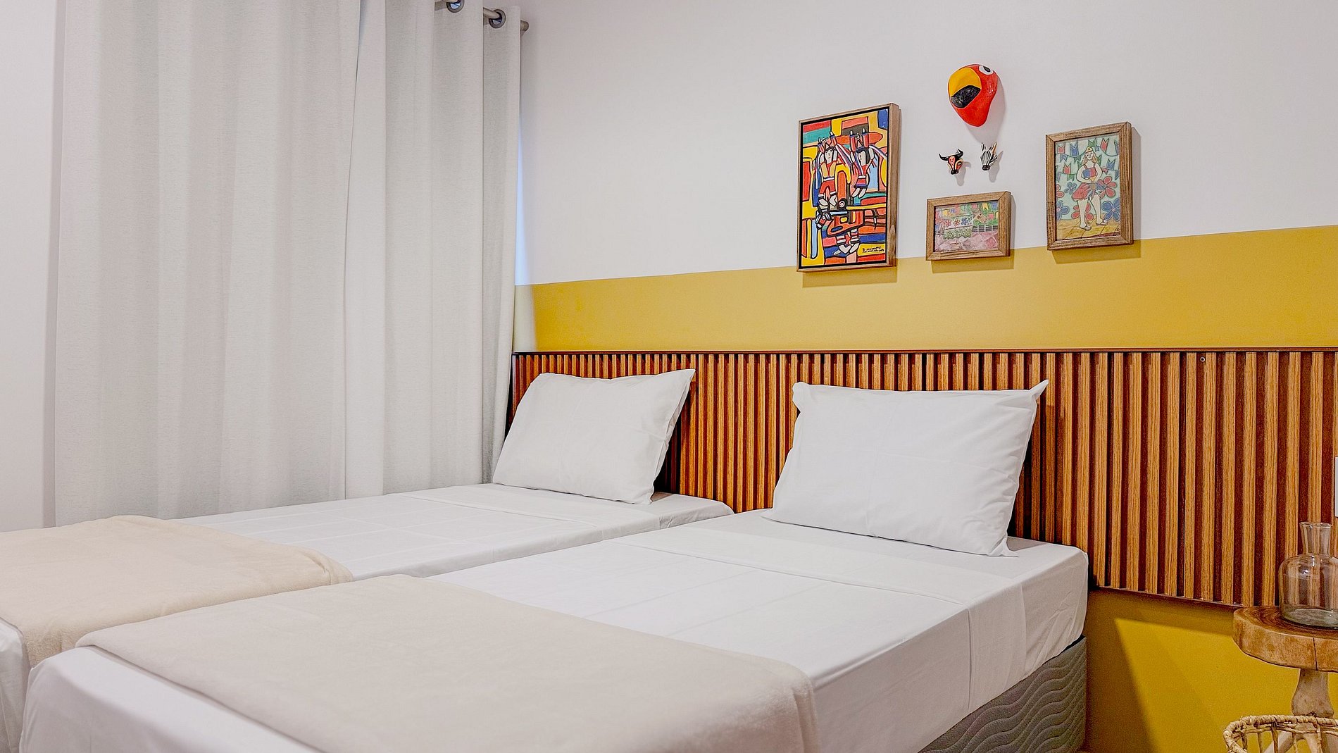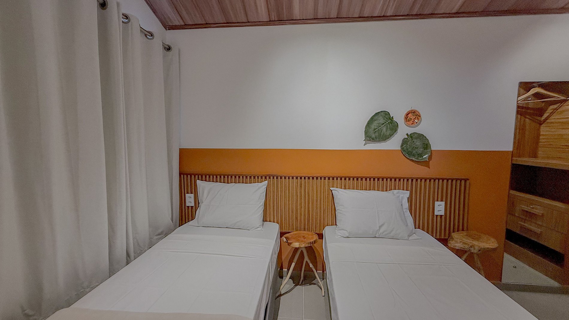A opção de quarto com camas de solteiro ou cama de casal permite acomodar diferentes configurações de hóspedes (casais, amigos, família), aumentando a versatilidade da acomodação.