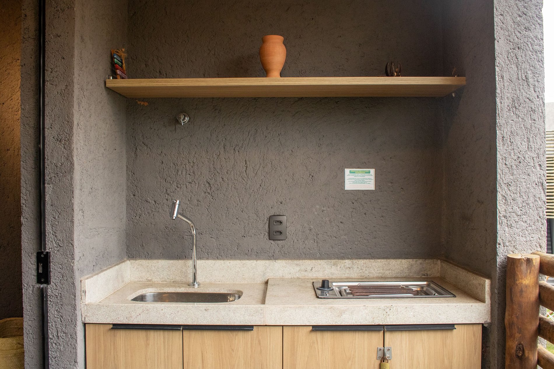 Possui 59m2, sendo 2 suítes, sala de estar com varanda gourmet, cozinha, área de serviço e 01 vaga privativa