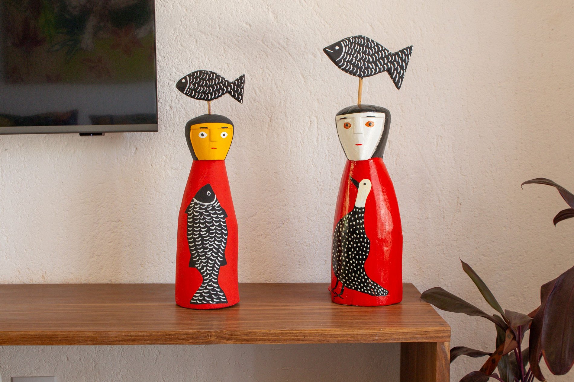 Decoração que une obras de artistas alagoanos da Ilha do Ferro e peças contemporâneas brasileiras.