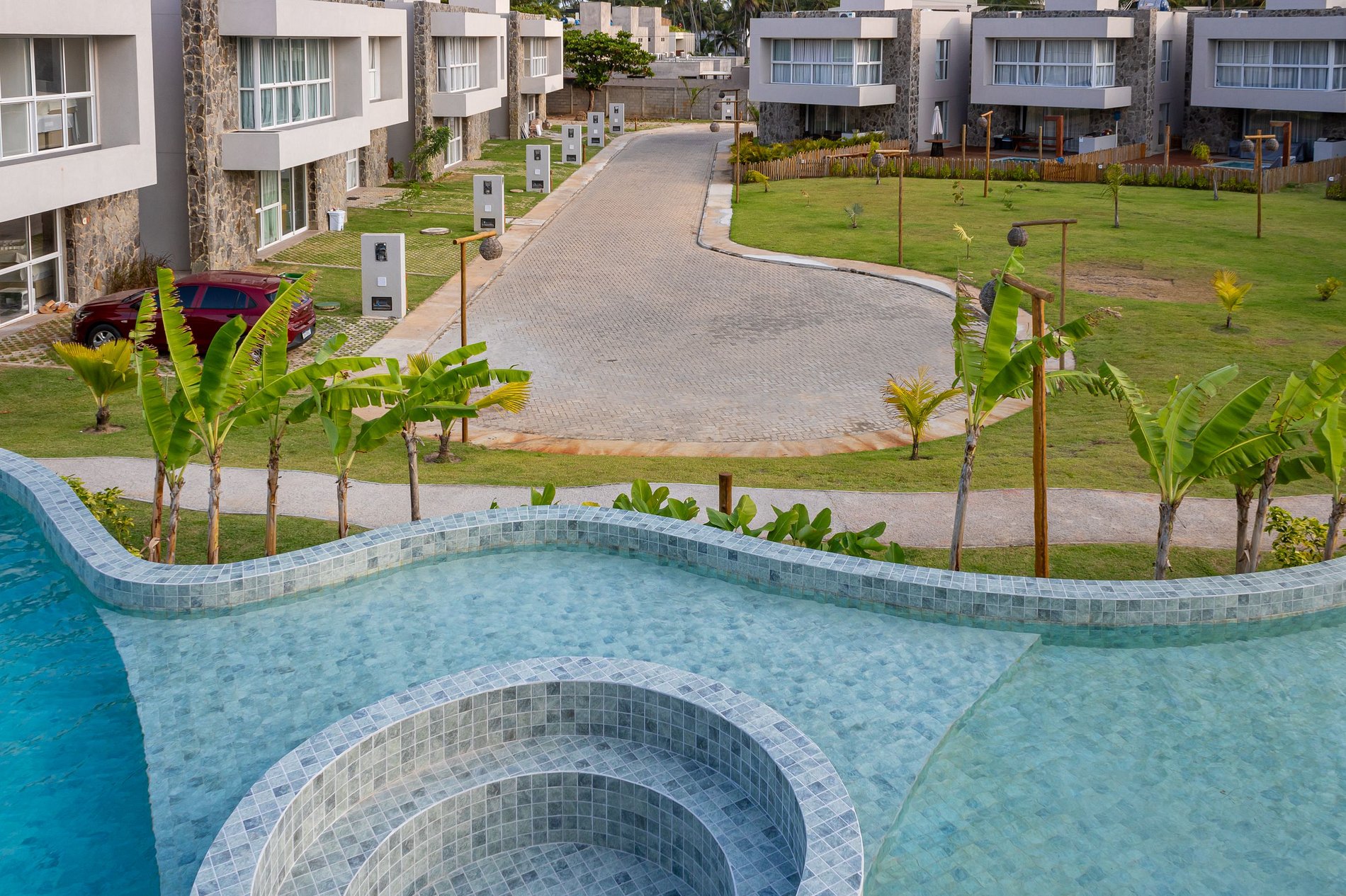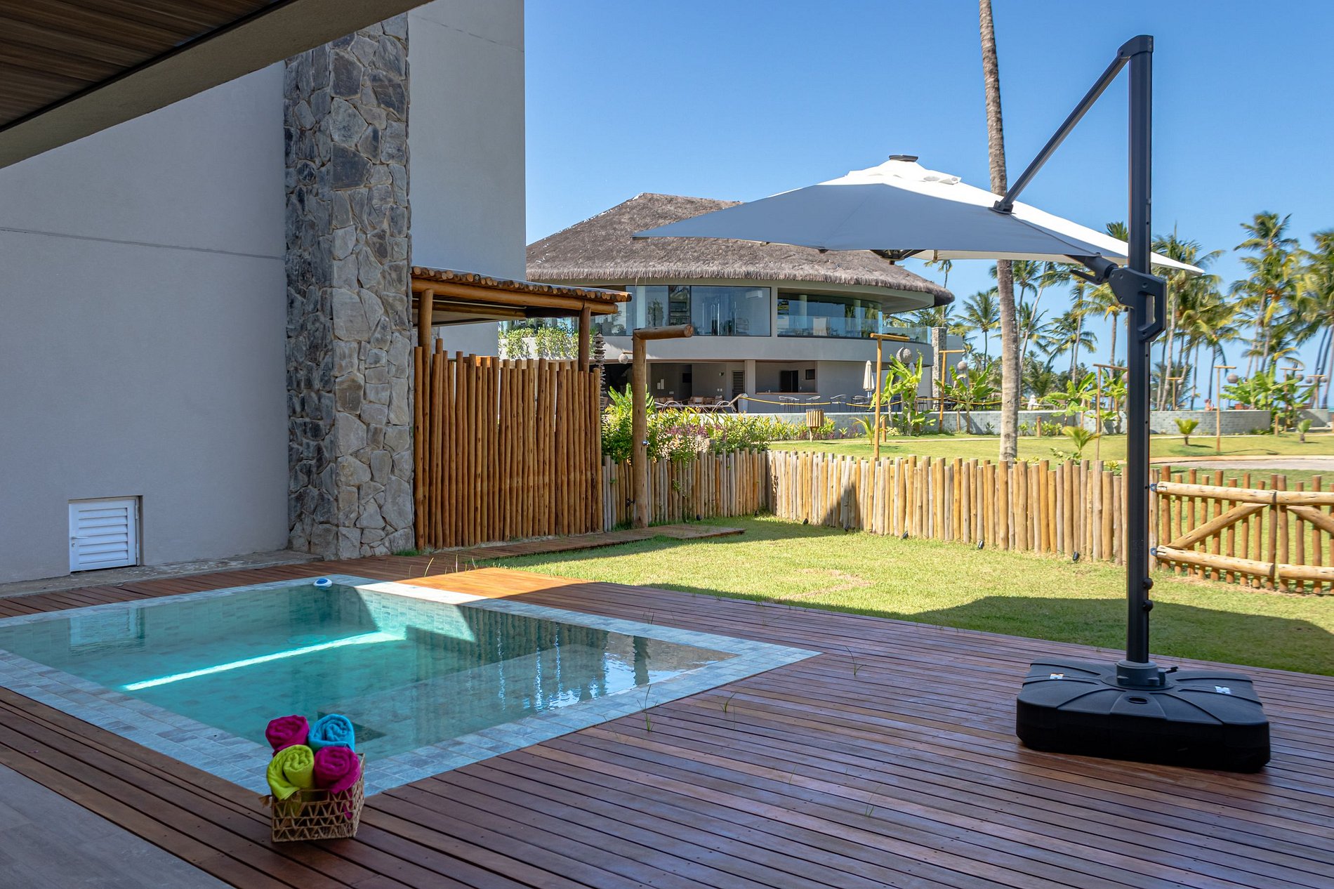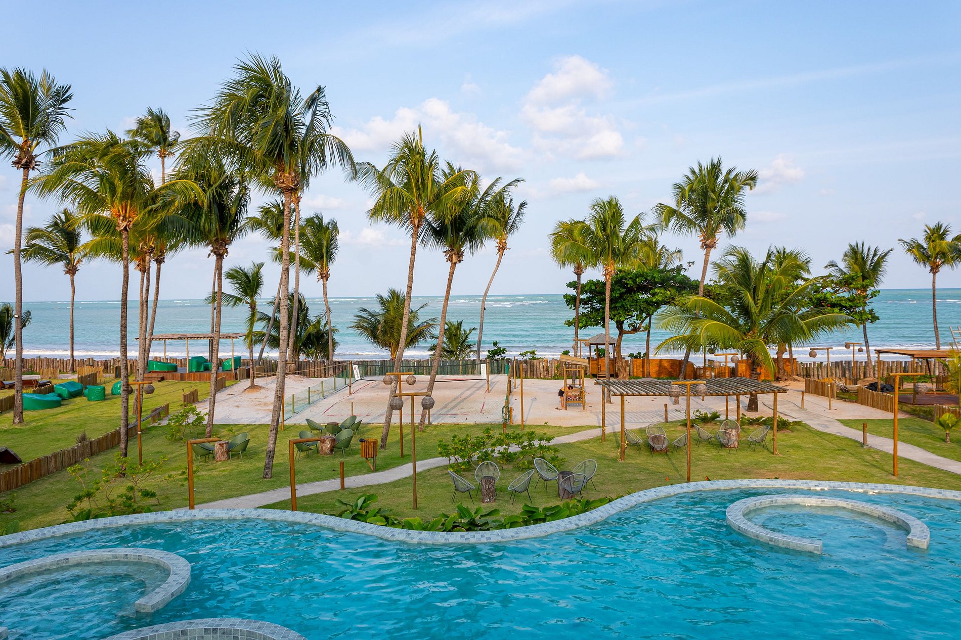 A proximidade com a praia e a abundância de áreas verdes ao redor criam uma sensação de constante contato com a natureza. A vista para o mar ou para os coqueirais completa a experiência de viver em um paraíso tropical.