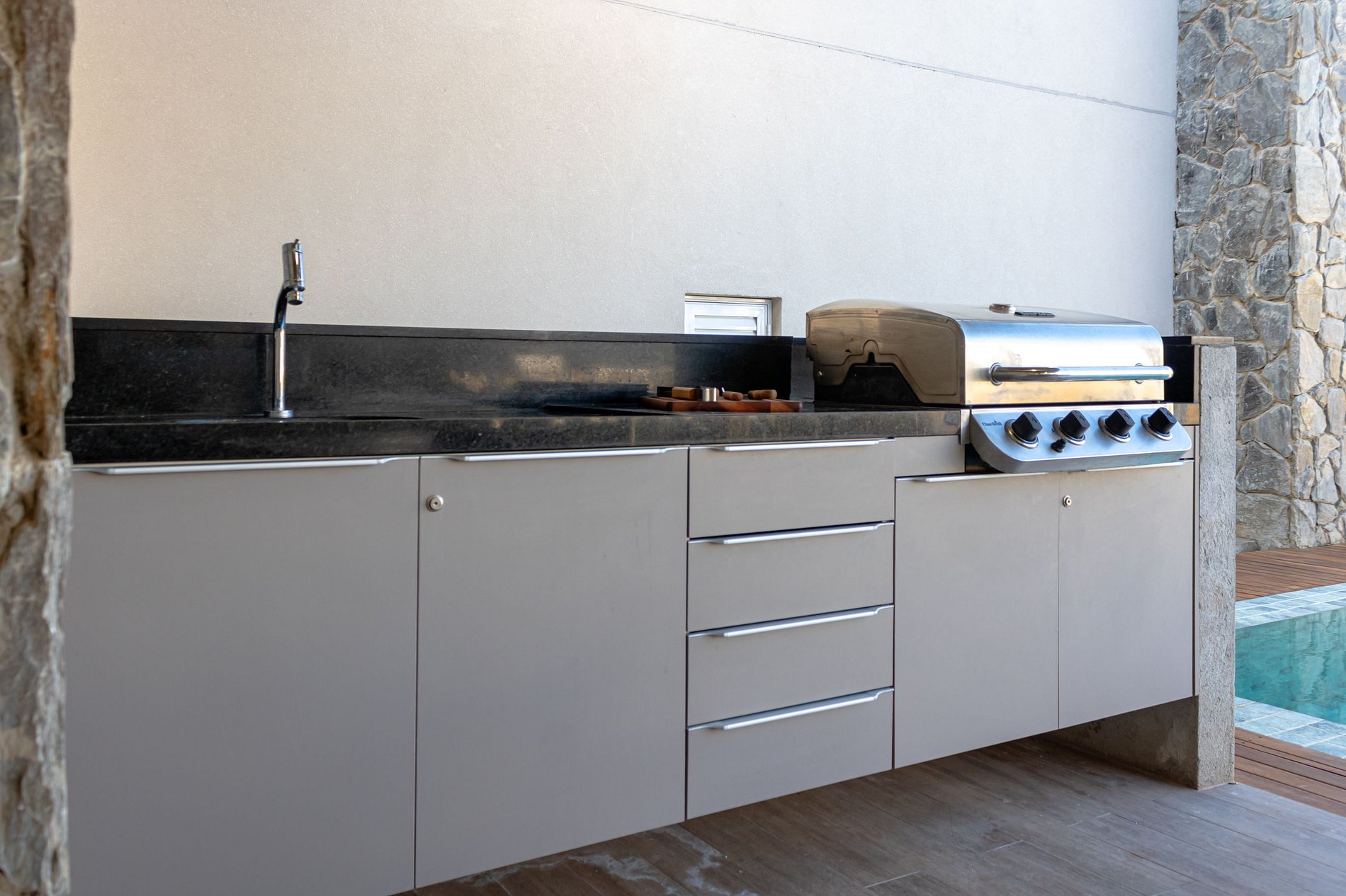 Todos os acabamentos são de altíssimo padrão, com pisos em porcelanato, esquadrias em alumínio anodizado, e detalhes em madeira natural. A paleta de cores neutras, combinada com toques de elementos naturais, cria um ambiente acolhedor e sofisticado.