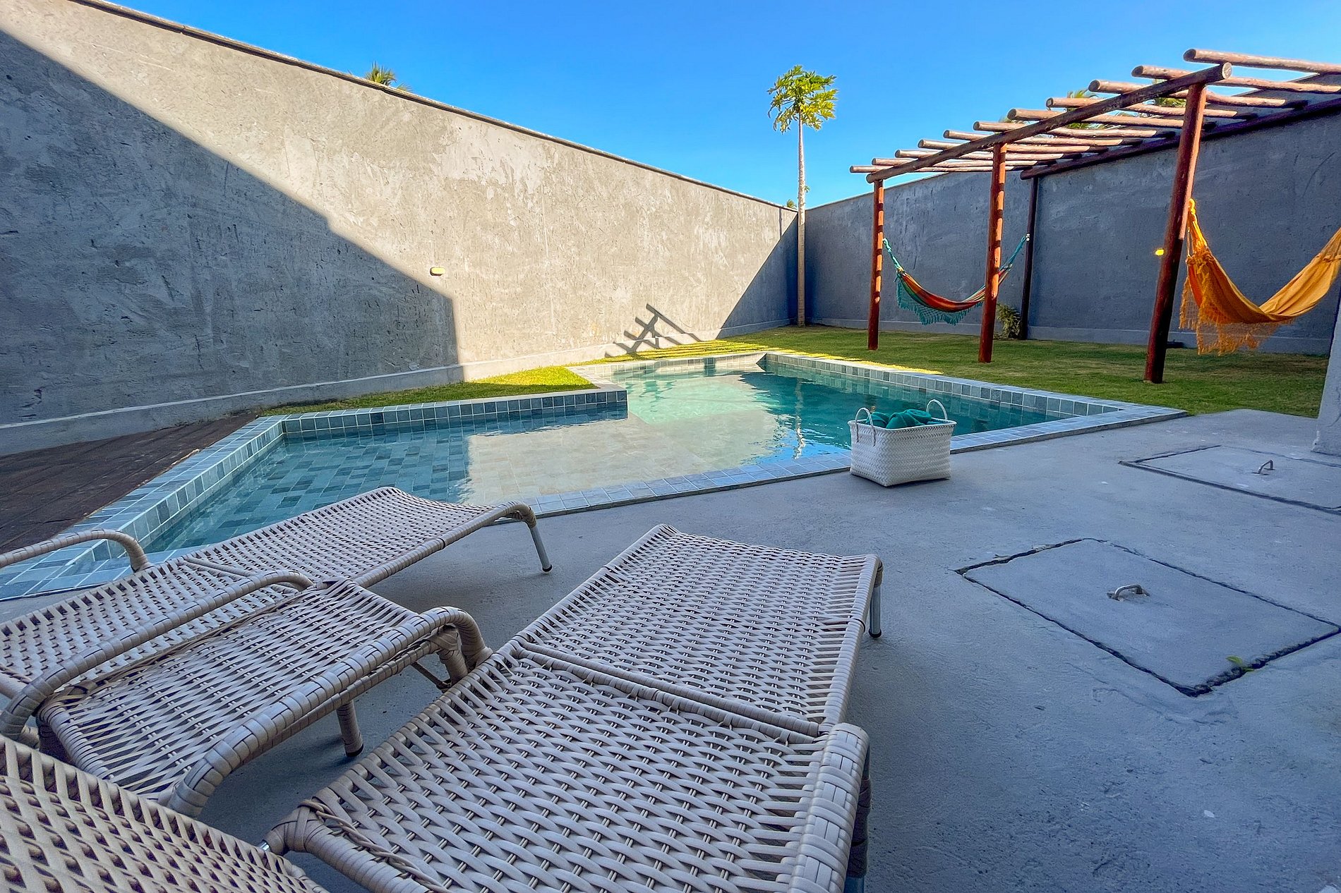 A casa recém pronta é completa e super bem equipada com utensílio de cozinha, área de serviço e uma excelente área de lazer, para trazer ainda mais praticidade, comodidade e conforto a sua estadia com família e amigos.