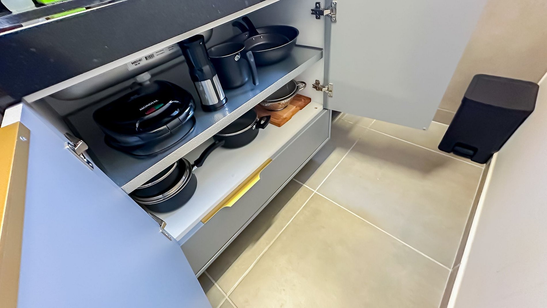 Cozinha equipada: Geladeira, micro-ondas, cafeteira, liquidificador, pia e utensílios básicos para cozinhar;