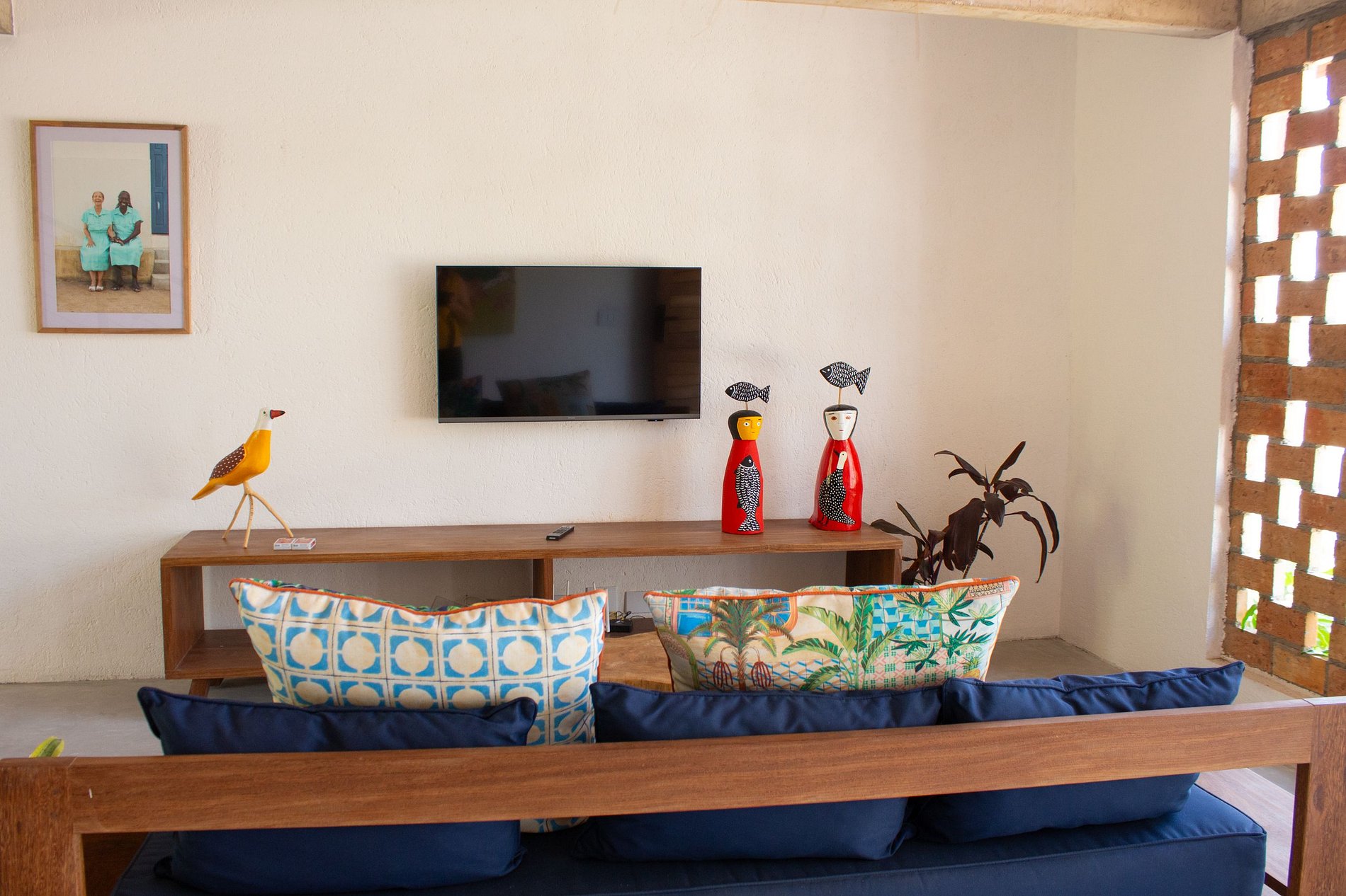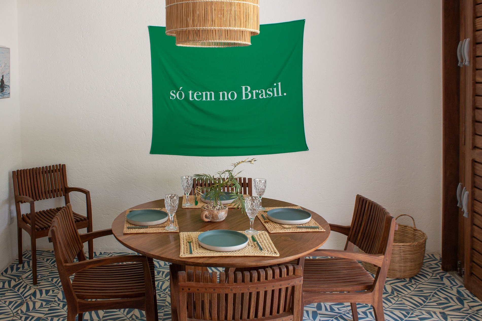 Decoração que une obras de artistas alagoanos da Ilha do Ferro e peças contemporâneas brasileiras.