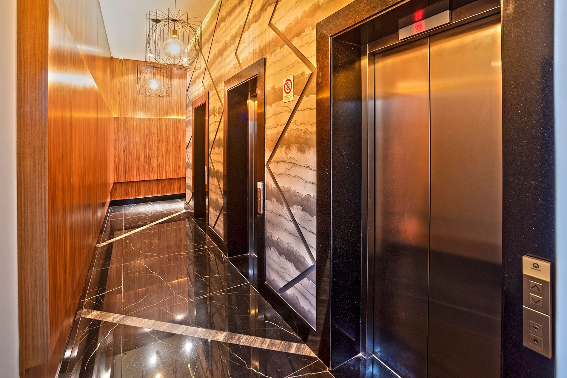 Transportar animais no braço ou na caixa de transporte pelo elevador de serviço;