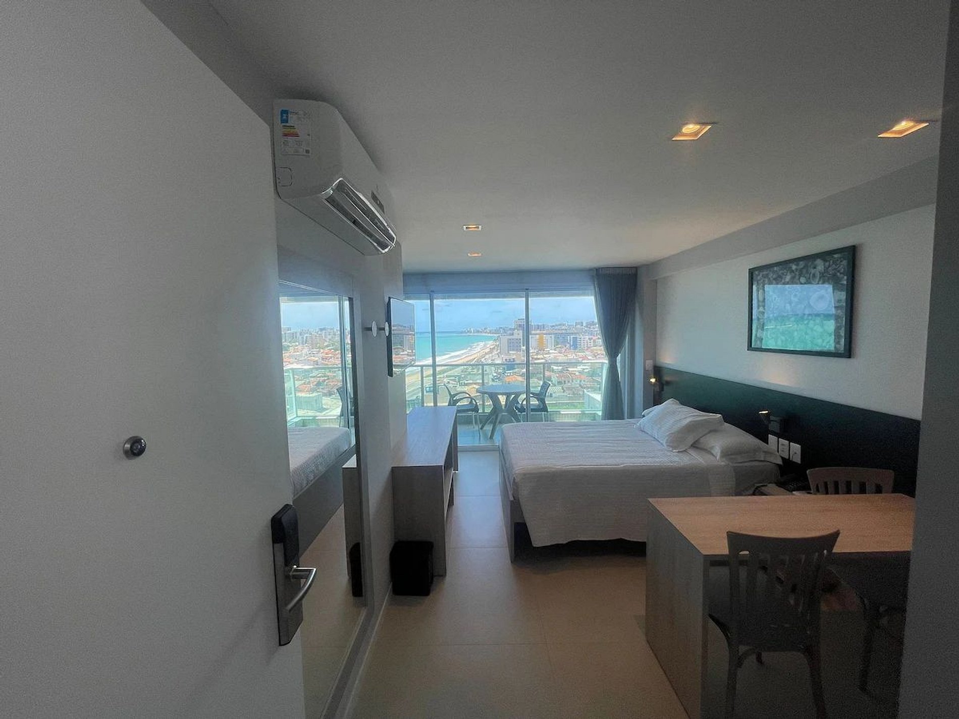 Desfrute do conforto com vista para a praia neste moderno e acolhedor apartamento, que acomoda até 2 pessoas. Cozinha totalmente equipada, ar-condicionado e uma vista deslumbrante do mar. O prédio oferece uma excelente infraestrutura, estacionamento gratuito. Uma experiência única aguarda por você neste refúgio, com um kit de chegada que inclui shampoo, condicionador, sabonete e papel higiênico. Completo com lençóis e toalhas para sua comodidade.