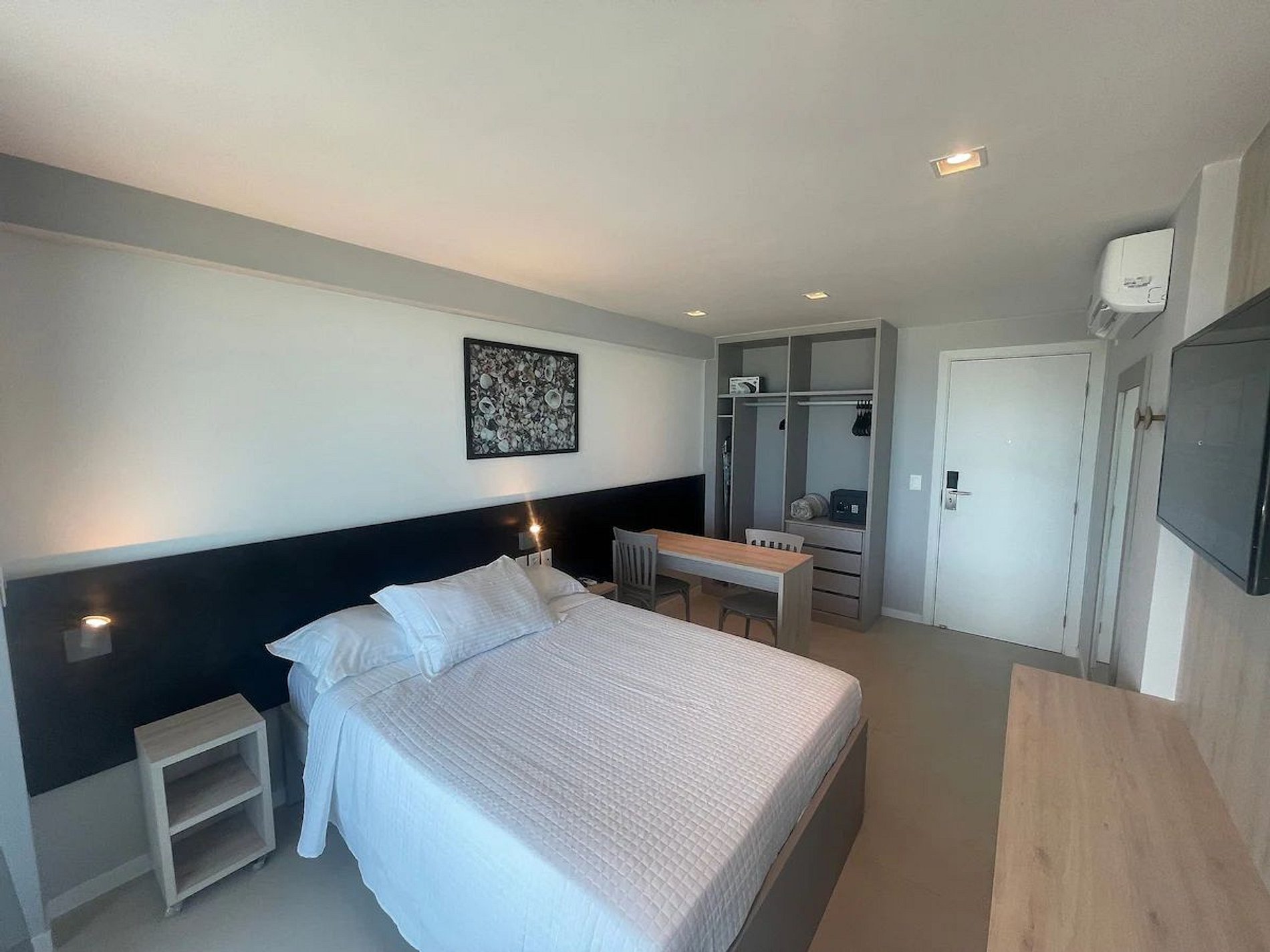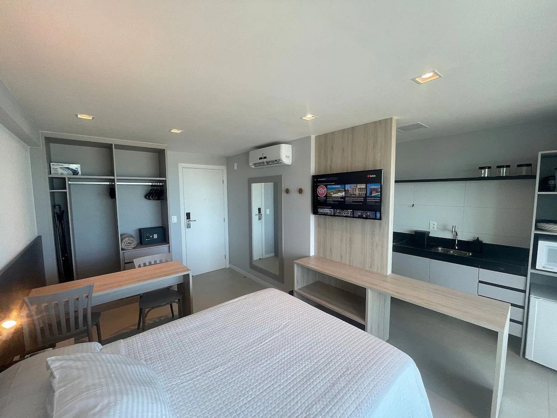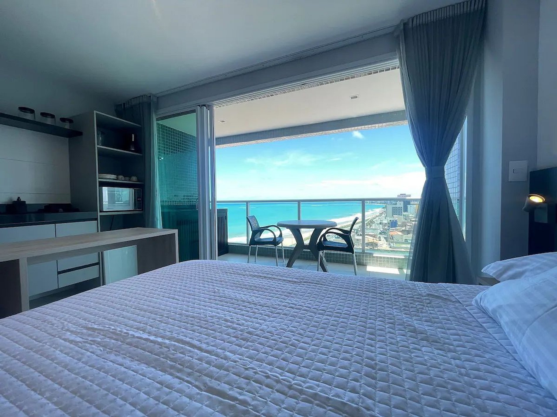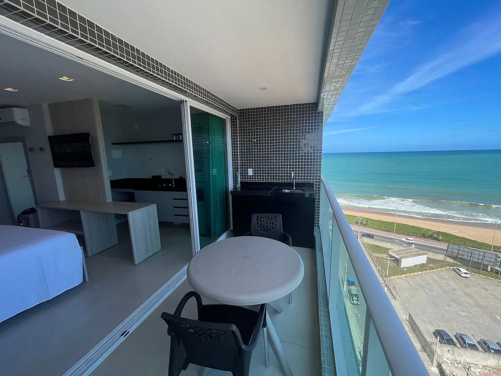 Desfrute do conforto com vista para a praia neste moderno e acolhedor apartamento, que acomoda até 2 pessoas. Cozinha totalmente equipada, ar-condicionado e uma vista deslumbrante do mar. O prédio oferece uma excelente infraestrutura, estacionamento gratuito. Uma experiência única aguarda por você neste refúgio, com um kit de chegada que inclui shampoo, condicionador, sabonete e papel higiênico. Completo com lençóis e toalhas para sua comodidade.