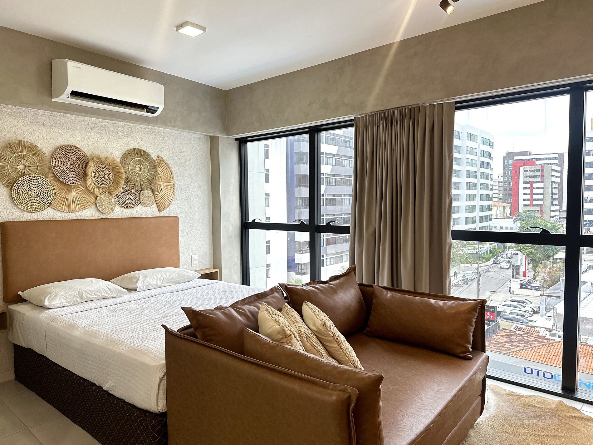 Conforto e Estilo em Cada Detalhe este moderno Studio de 32m² foi projetado para proporcionar uma experiência de hospedagem única. Com um design interior que combina elegância e aconchego, o espaço possui uma paleta de cores neutras que promove uma atmosfera de tranquilidade e sofisticação.