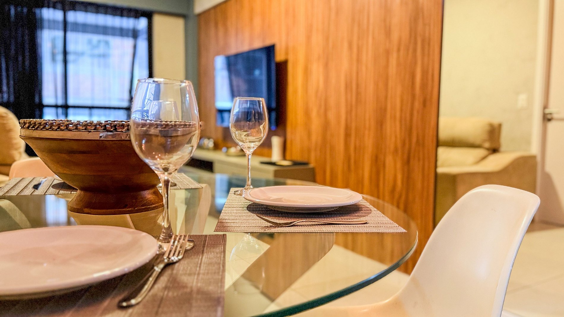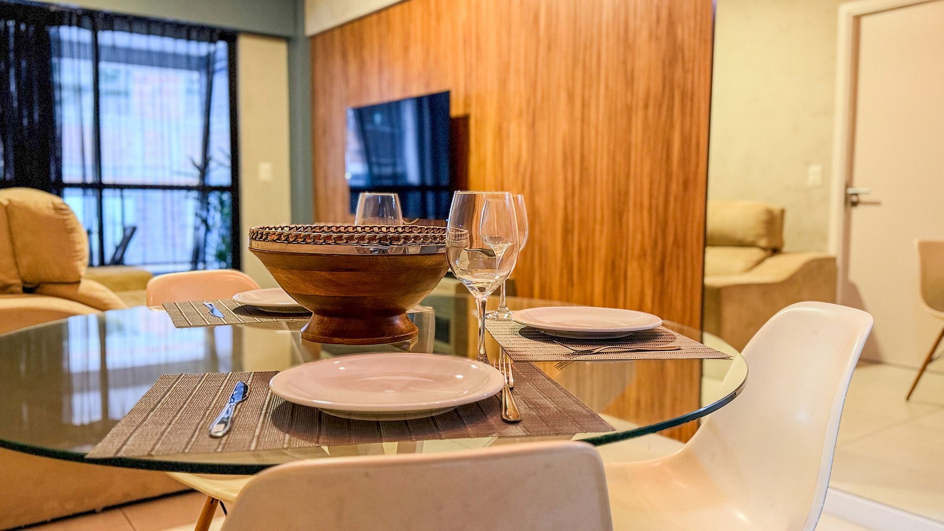 Desde os objetos decorativos na mesa de jantar até a organização dos utensílios na cozinha, cada elemento parece ter sido escolhido e disposto com cuidado, elevando a experiência geral do hóspede e transmitindo uma sensação de zelo pelo espaço.