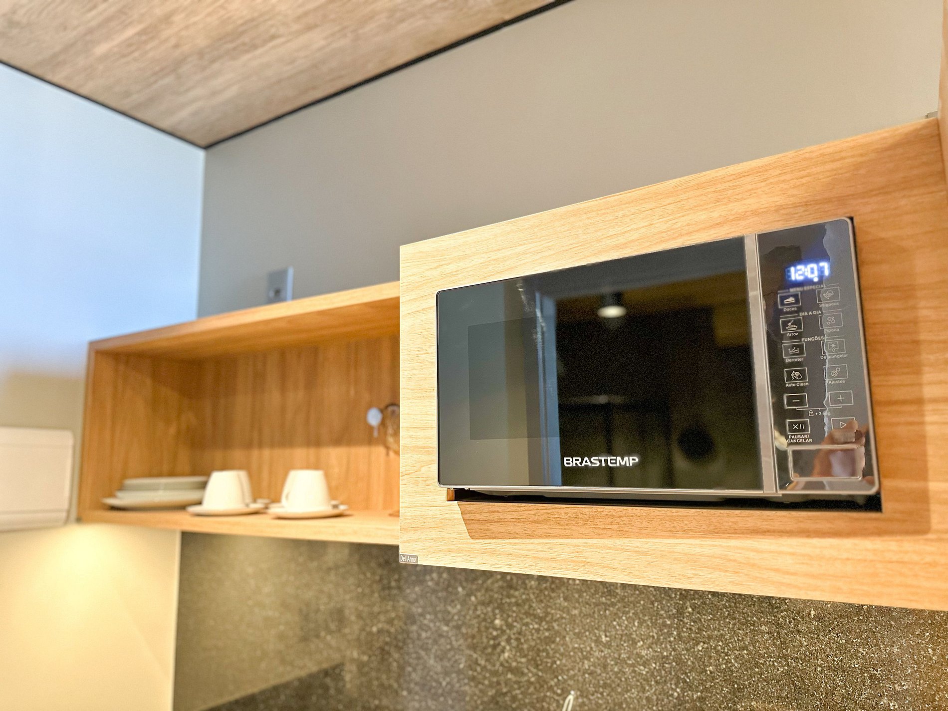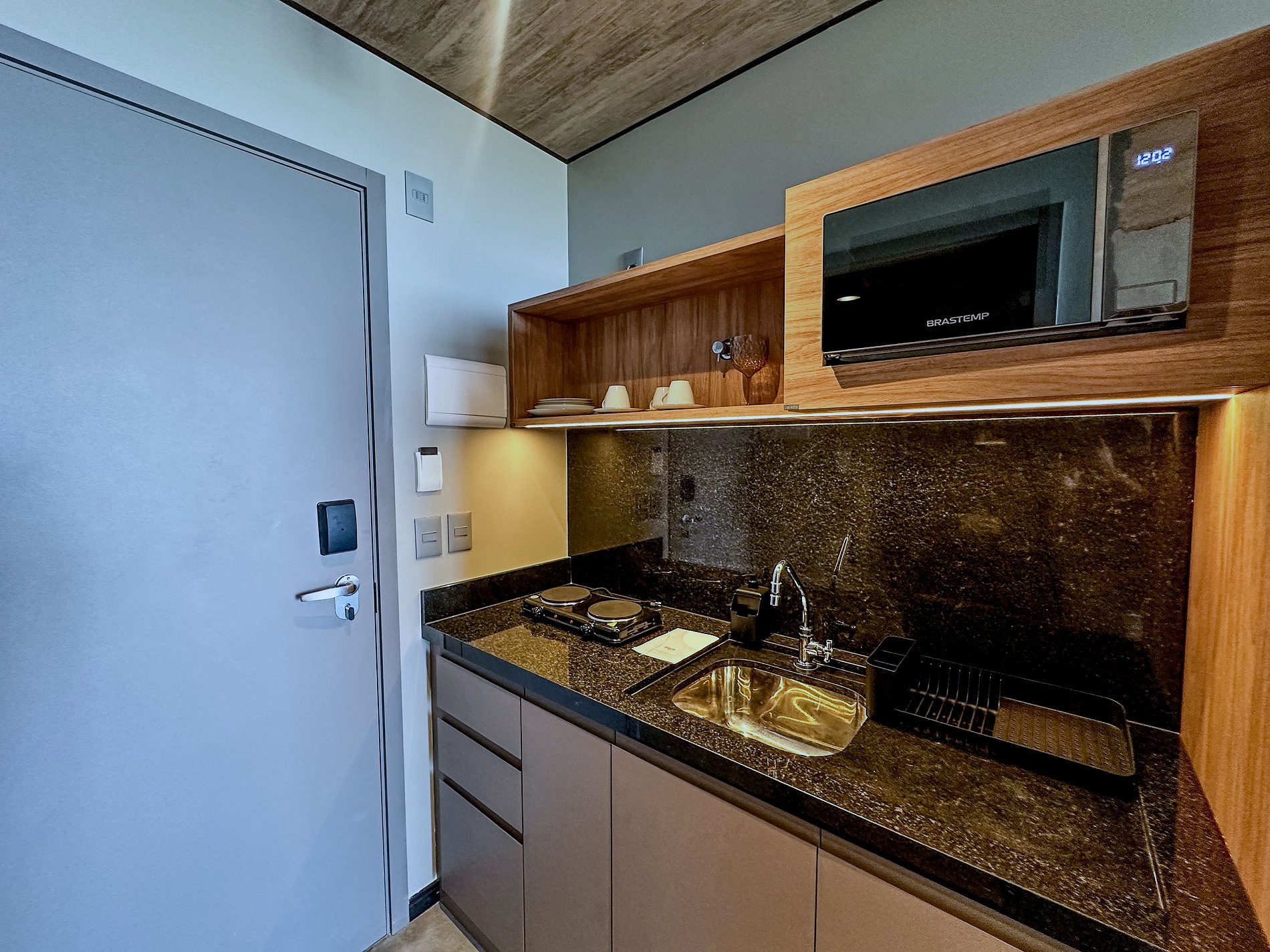 Cozinha compacta e bem equipada com eletrodomésticos de alta qualidade, permitindo você uma refeição caseira se desejado.