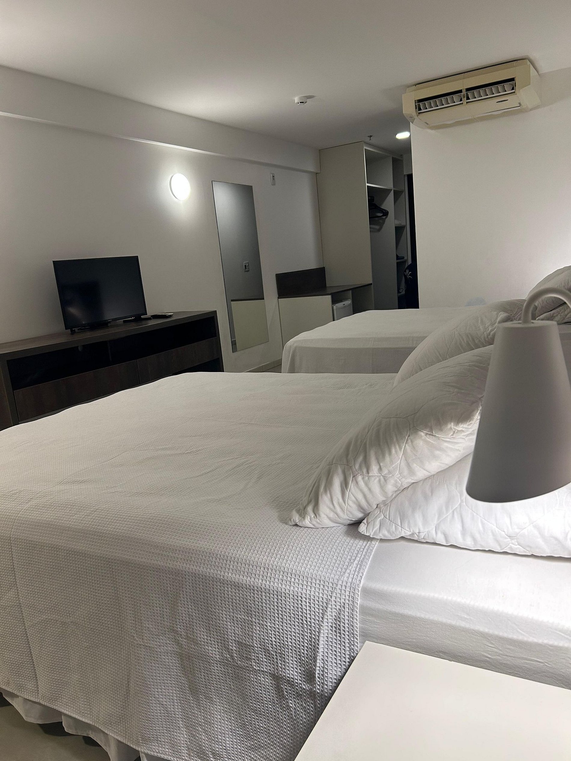 Na unidade você encontrará, ferro de passar, secador de cabelo, araras de roupas com cabides e dentro do prédio loja e restaurante com opção de café da manhã (custo adicional).