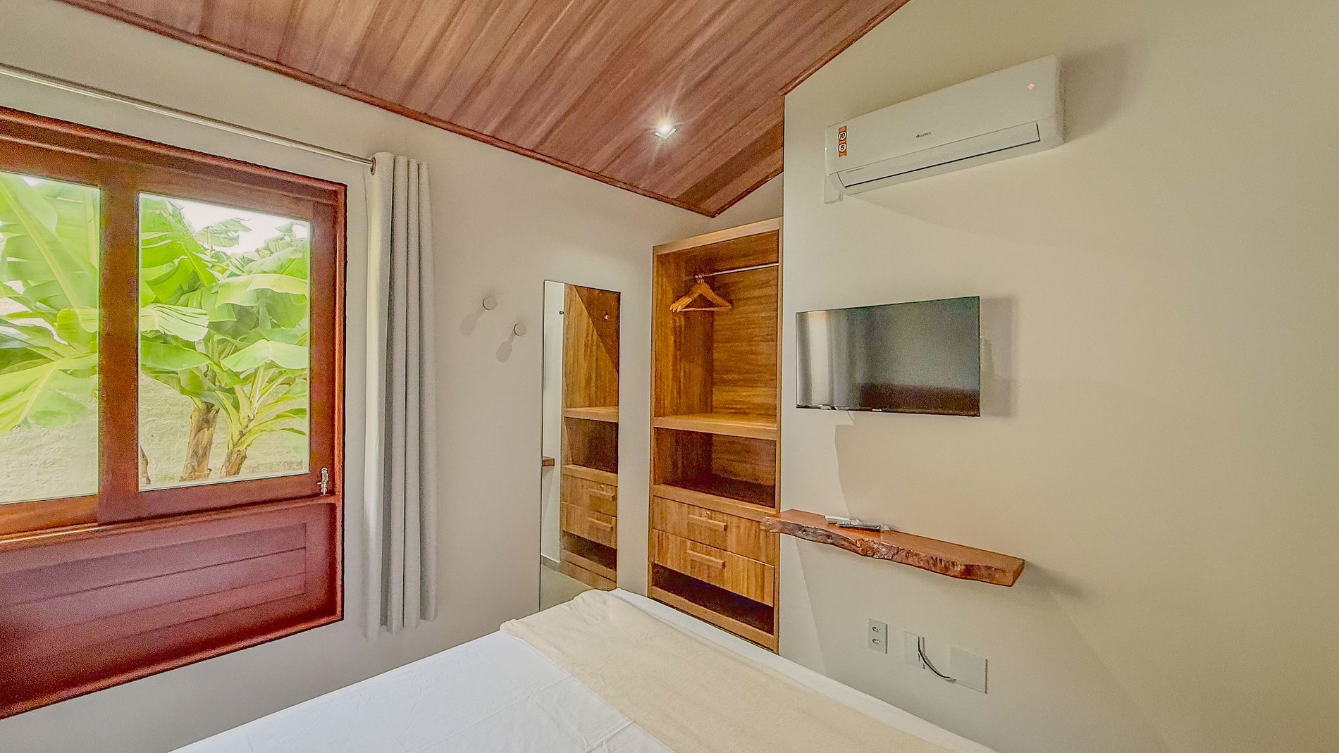 A presença do ar condicionado no quarto é um diferencial crucial, assegurando noites de sono agradáveis e uma temperatura ideal, independentemente do clima externo.