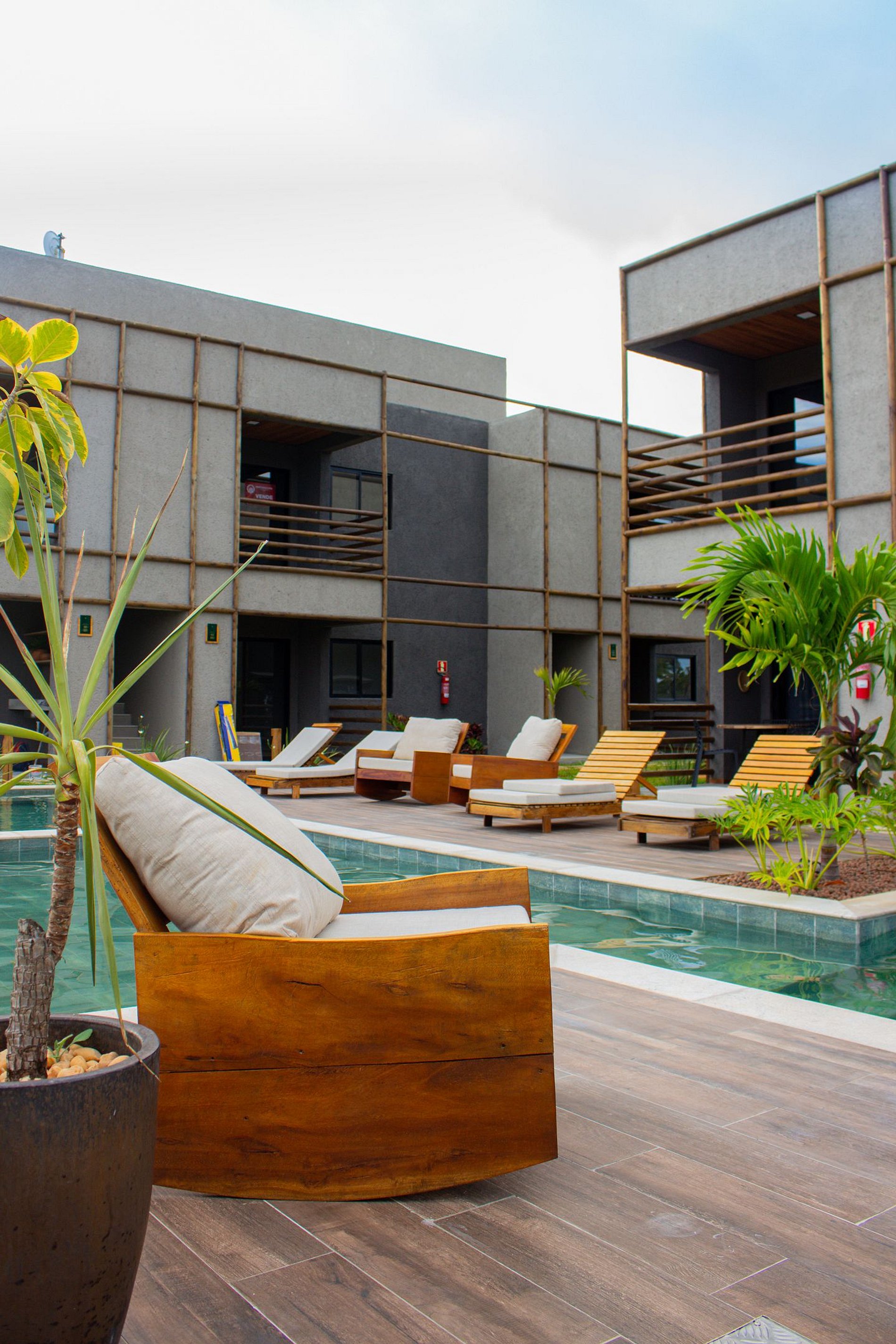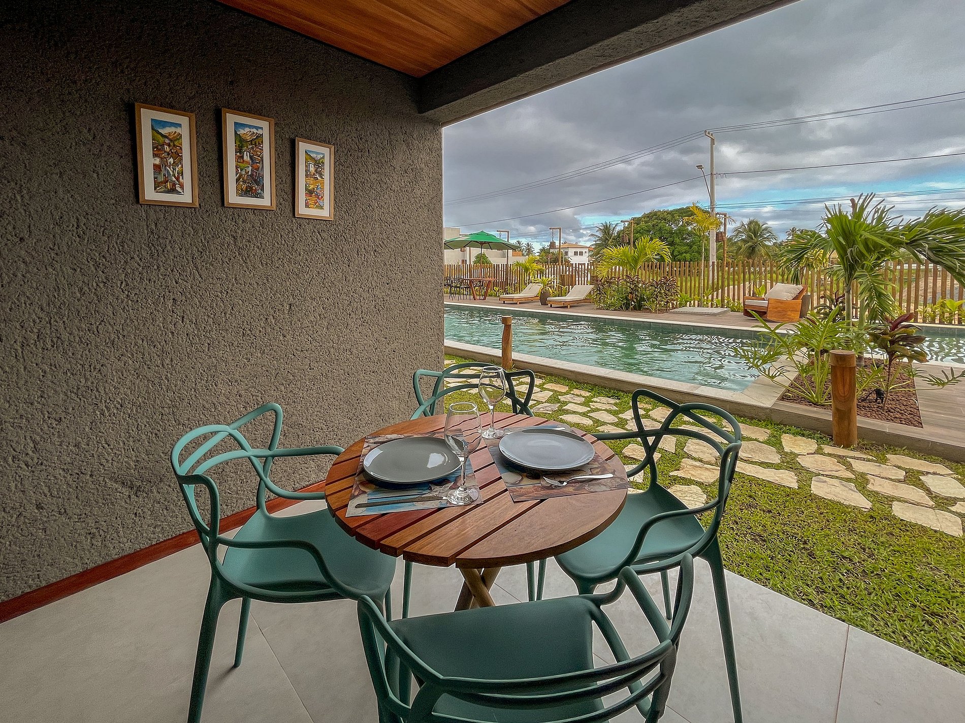 • terraço com vista da piscina.